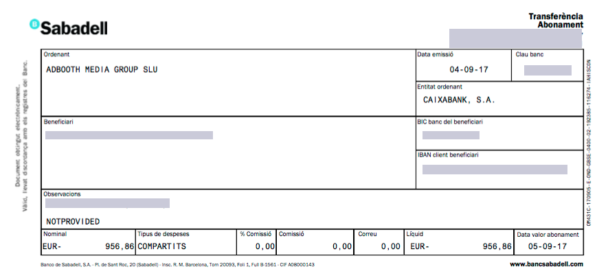 Comprobante de pago de Adbooth En general